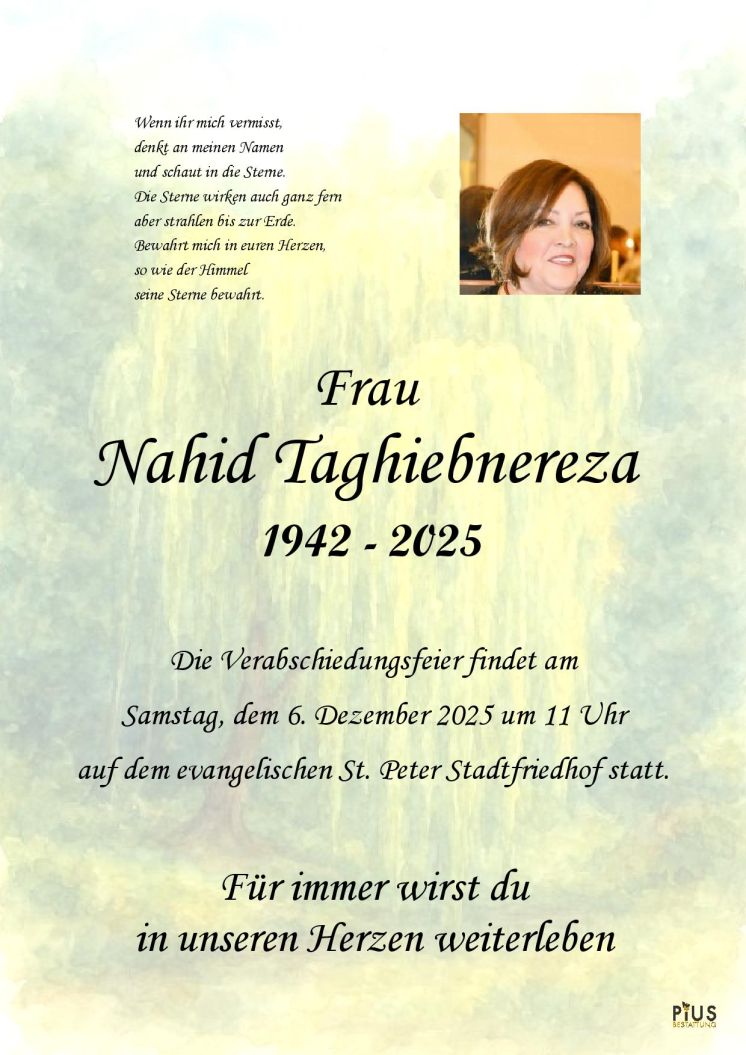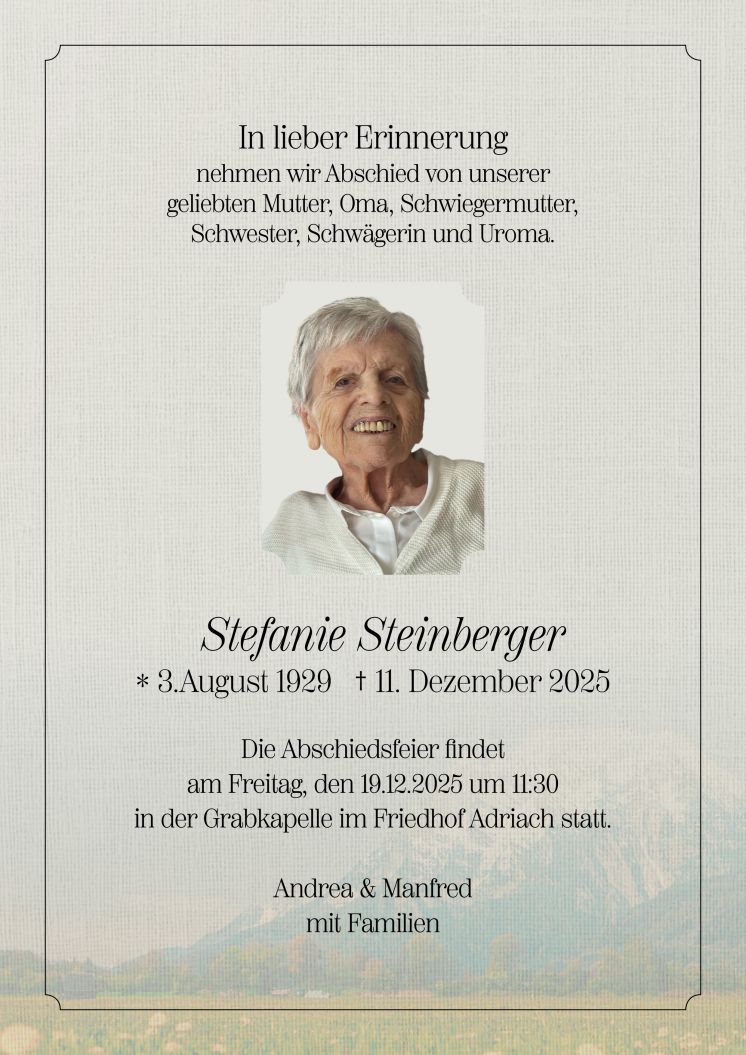 In unserem digitalen Gedenkraum geben wir Ihnen die Möglichkeit, Ihre Anteilnahme auszudrücken – jederzeit und von überall aus. Die Veröffentlichung der Traueranzeigen (Parten) erfolgt mit Zustimmung der Angehörigen.